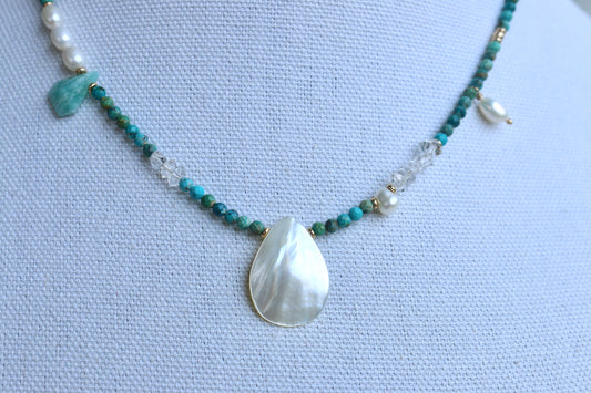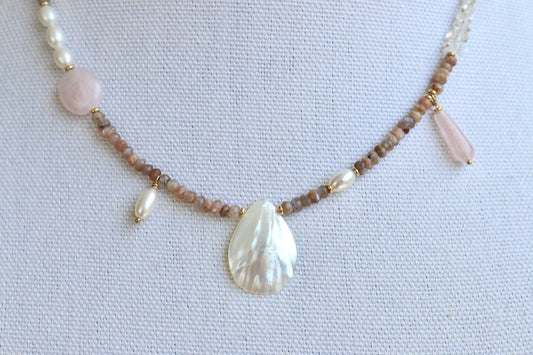 The Timeless Collection features freshwater pearls and Herkimer diamonds, with dainty chains...
